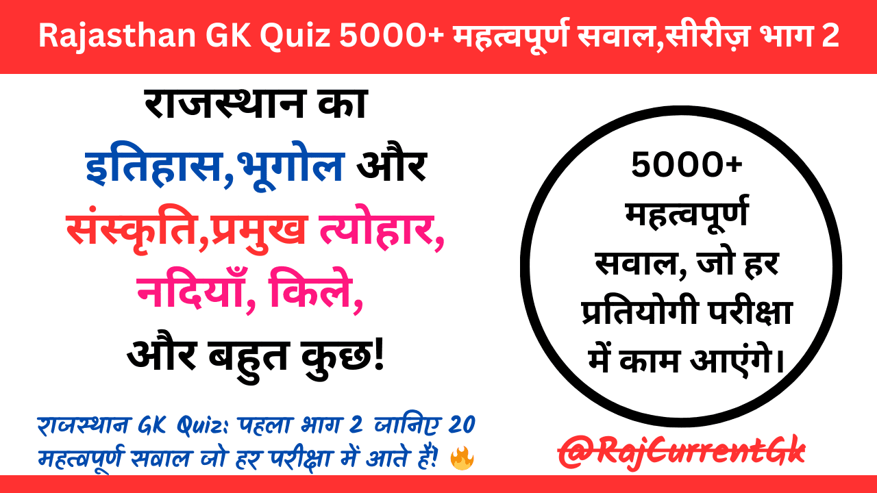 नमस्कार दोस्तों, स्वागत है आपका Rajasthan GK Quiz Series के दूसरे भाग में!